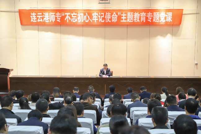 党委书记杨浩为全校中层干部及联系学院(学前教育学院、美术学院)党总支、所在支部(机关组织人事支部)的全体教职工党员,上了题为《寻根溯源守初心、登高致远担使命》的专题党课。